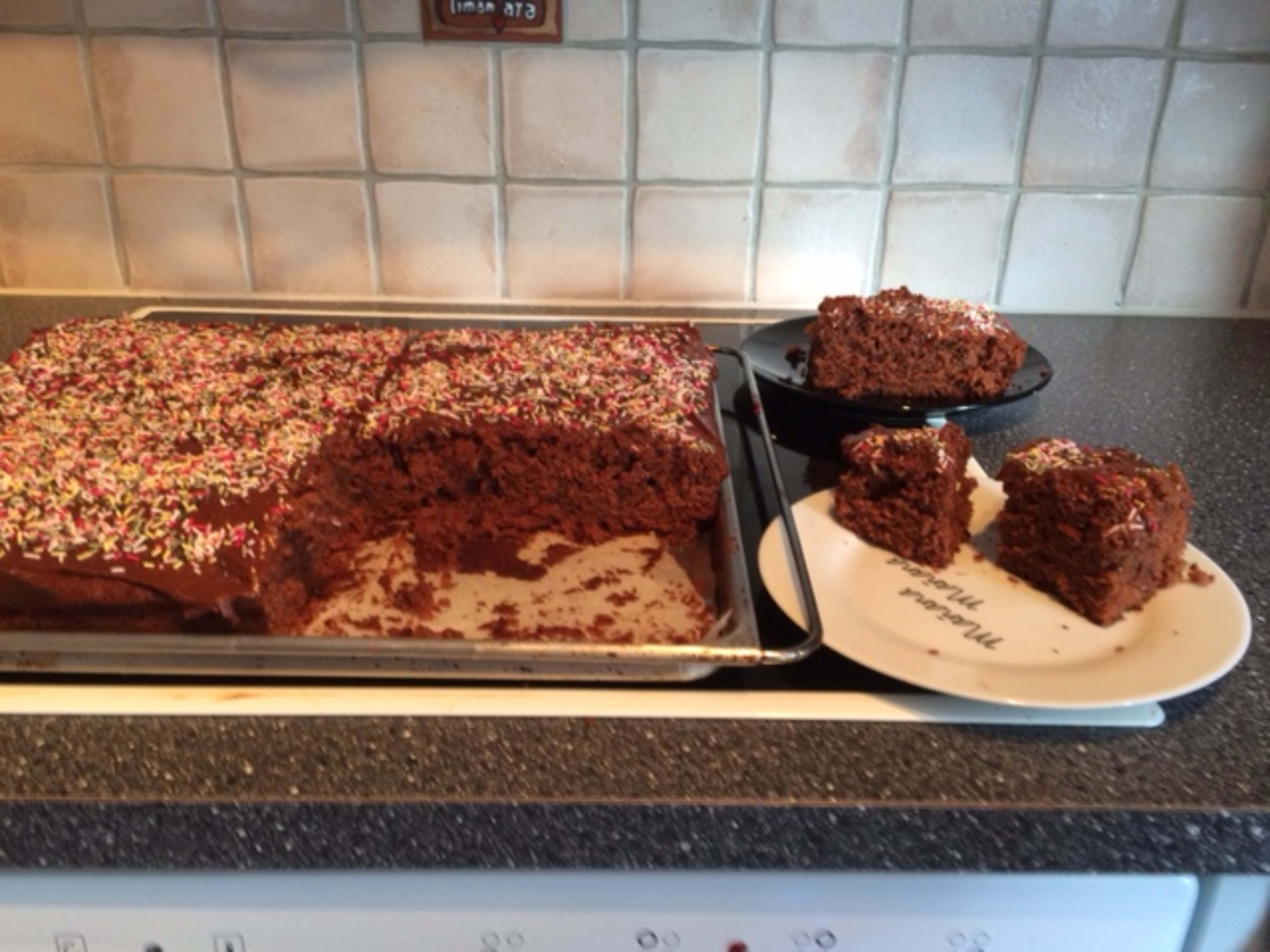når kaken er kald smøres den med sjokoladeglasuren og dryss kakestrø over.