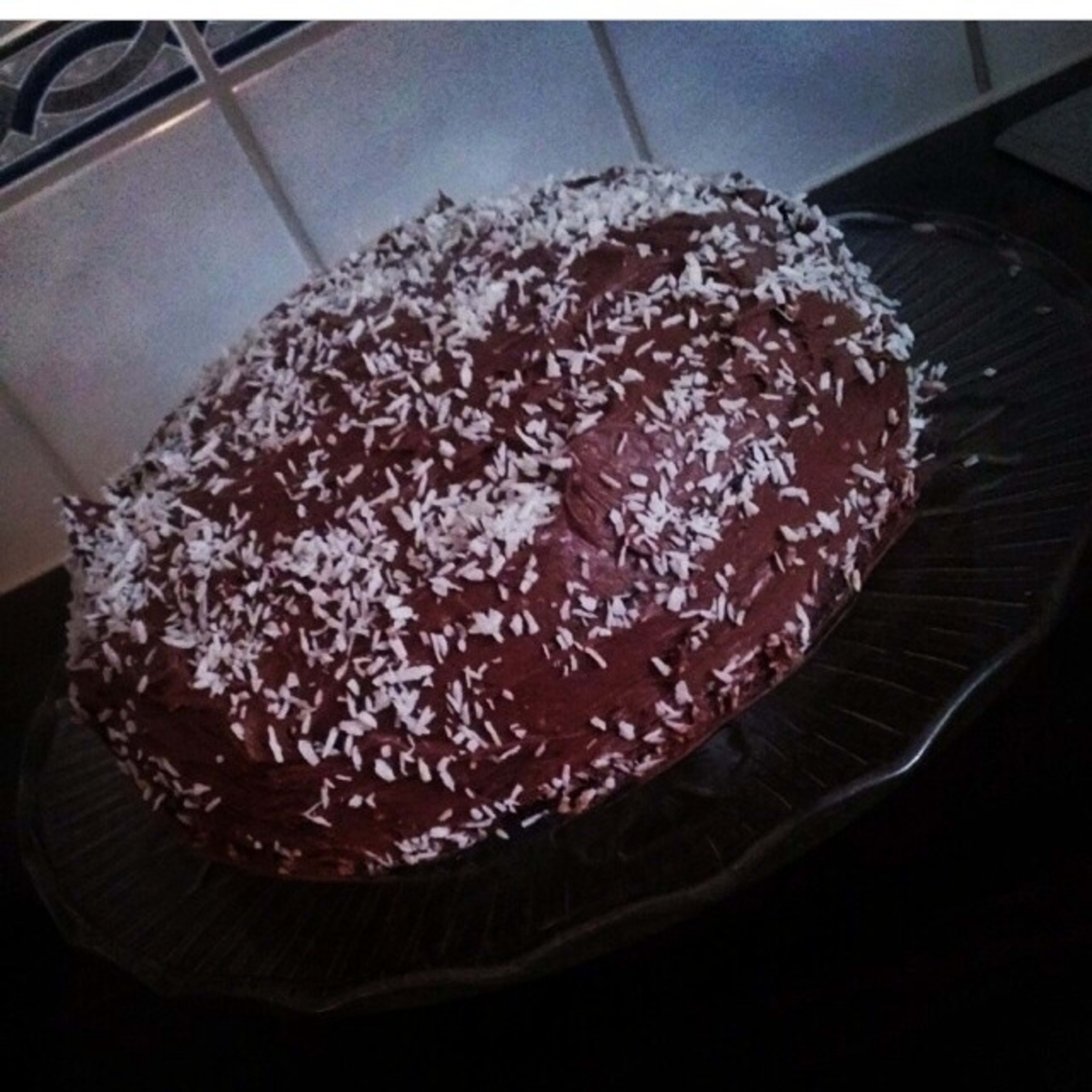 8. Avslutt med å strø kokosmasse på kaken.